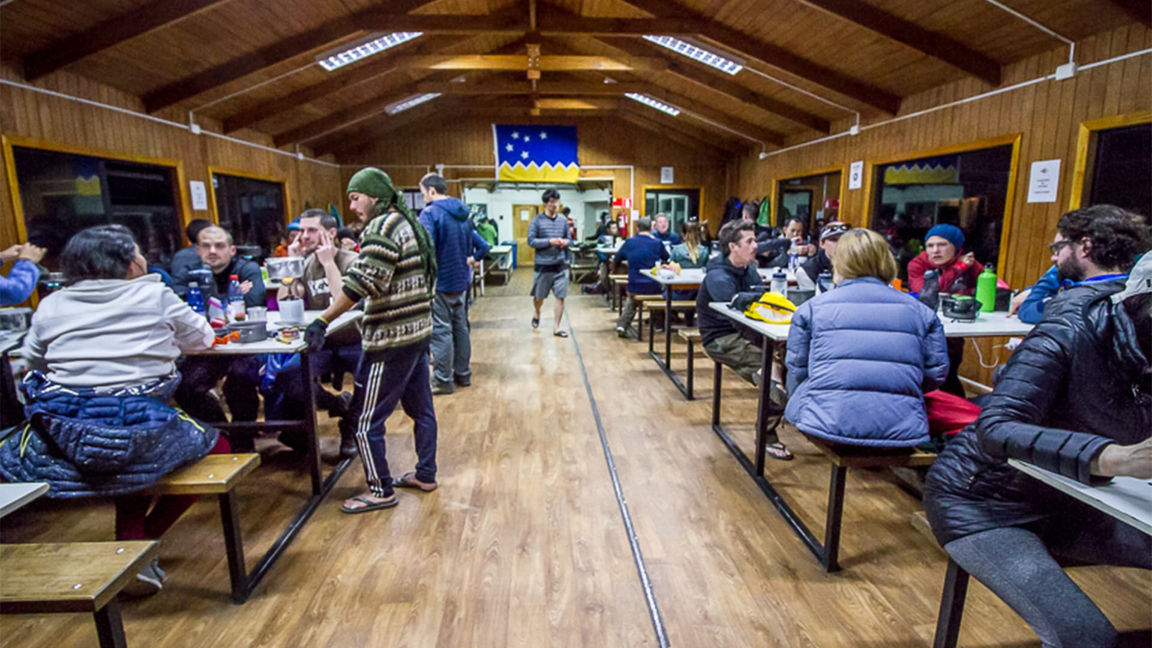 Este asombroso trekking pasa por diferentes paisajes, lle- vándote por bosques nativos, a lo largo de las orillas de los lagos. Entretanto disfrutas de las increíbles vistas y te mara- villas con los glaciares que se derraman sobre la cima de la montaña. Al salir de la arboleda, llegarás al primer mirador sobre el Lago Grey y de a poco comenzarás a ver que flo- tan más y más trozos del glaciar. Después de tu aventura, tomarás una navegación por el Lago Pehoé y luego un bus hacia Laguna Amarga para hacer conexión con el shuttle con destino a Hotel Las Torres. Cena y alojamiento en Hotel Las Torres.